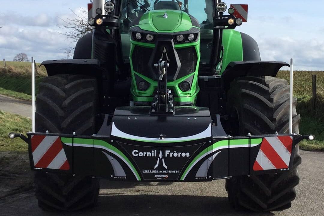 The finishing touch on every TractorBumper is customised branding. As standard, SafetyWeight bumpers include smart, flowing decals that really bring the bumper to life. Decals can be applied in colours to match your tractor brand or your company’s own colours. If you wish, you can also have your company logo or your tractor brand logo added to the decals set at no extra cost.