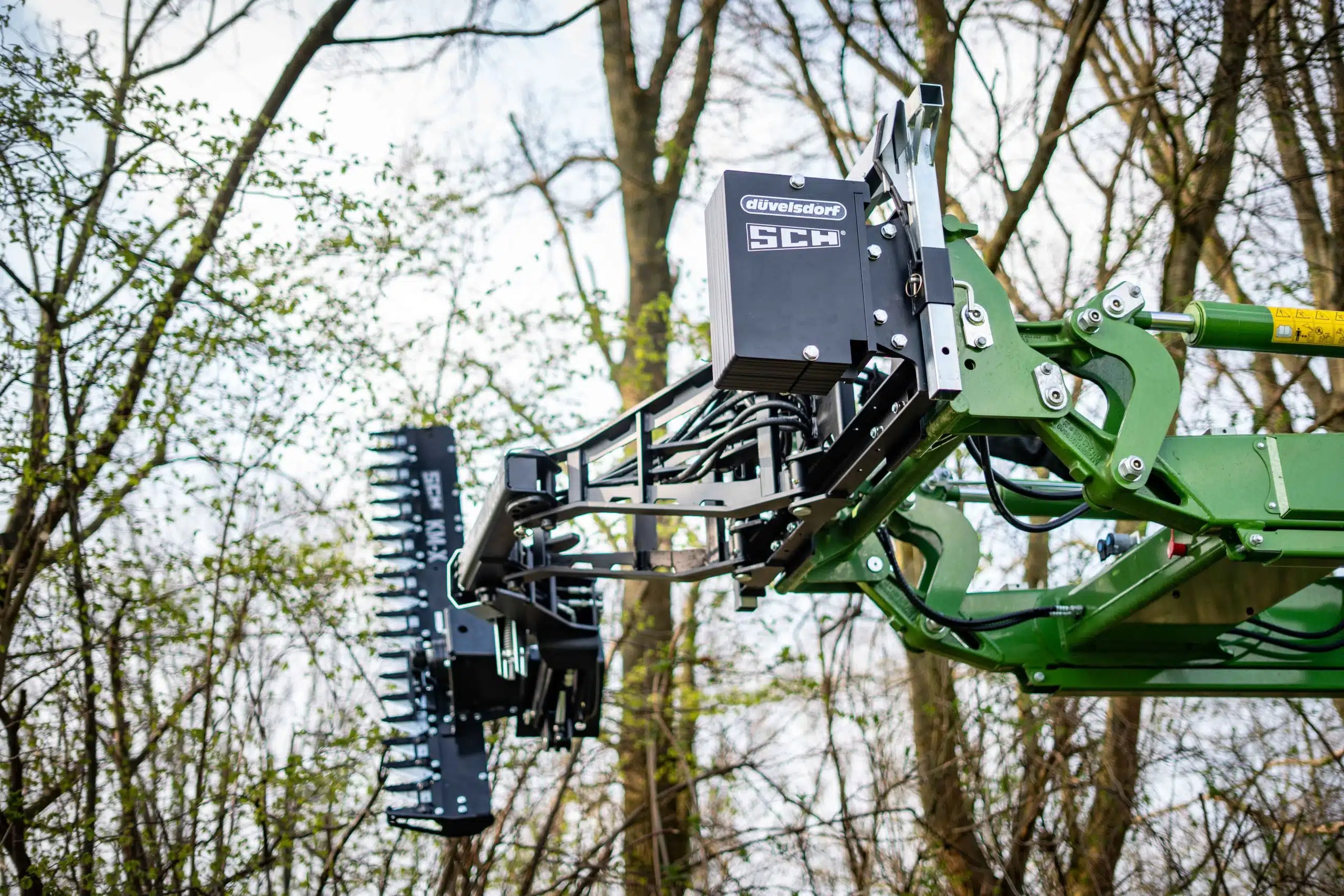 The MC190 offers a host of features and benefits designed to make life easier for professionals tasked with maintaining hedgerows and woodland in the agricultural and landscaping sectors. Tool-free width adjustment based on a parallelogram principle is standard in five stages from 0.88m to 1.93m. As an option, infinitely variable hydraulic width adjustment is also available from the driver’s seat. Hydraulic lines are safely laid within the frame to protect against damage from falling cut material. For a precise cut, the MC190 is also equipped with an integrated angle display. This allows a very simple visual control of the desired cutting angle.